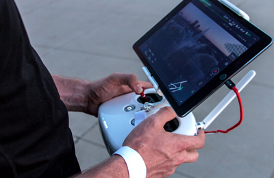 Mit einer Fernsteuerung wird dieDrohne mit Kamera gelenkt. Über die Steuerung kann das Fluggerät in einen Neigungswinkel gesetzt werden, was für den gewünschten Vorwärtstrieb sorgt. Grundsätzlich gehören diese Fluggeräte zu den Hubschraubern und sind daher in der Lage, senkrecht und ohne Anlauf starten bzw. ohne Auslauf landen zu können. Betrieben werden Drohnen mit elektrischem Strom aus Akkus. Die Flugdauer richtet sich nach Stärke der Akkus und liegt zwischen 7, 12 und bei einigen Modellen bis zu 30 Minuten.